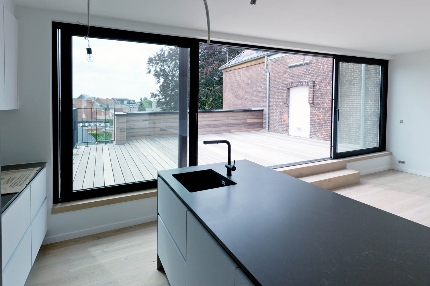 Er is uitzonderlijk veel lichtinval dankzij de grote ramen met hoogrendementsglas.